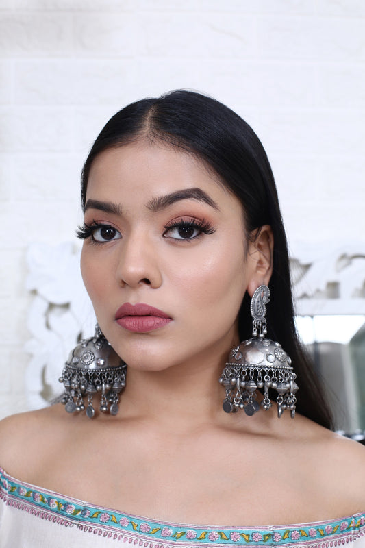 JAHNVI OVERSIZED SILVER JHUMKAS
