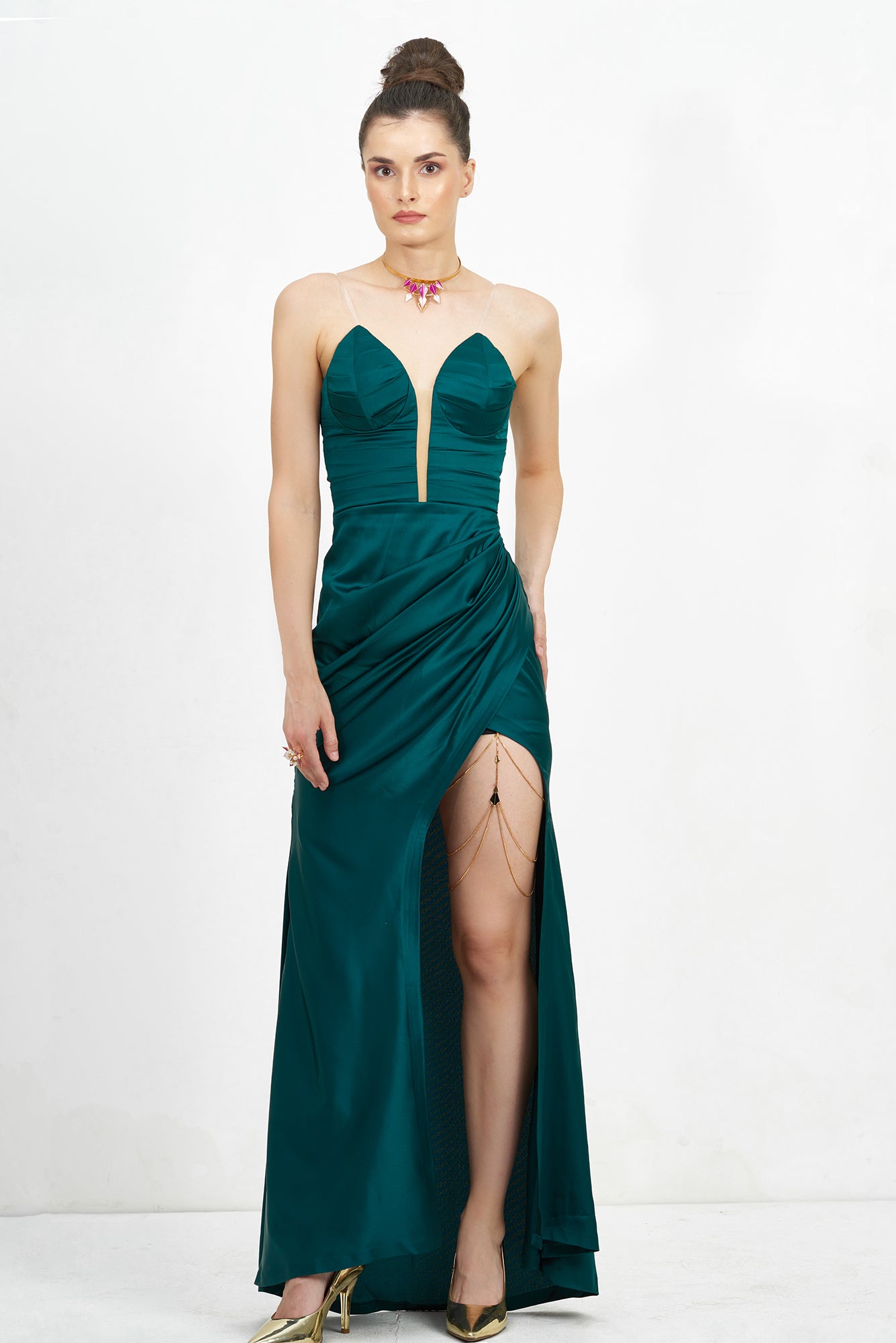 A stunning style statement to set you a class apart, RUHHEITE's Ace Thigh chain is a must-have accessory that you ought to possess. The black and gold adornments make for a complementing accent. The perfect match for a high-slit dress, this thigh chain lends a sensational gleam to your persona.