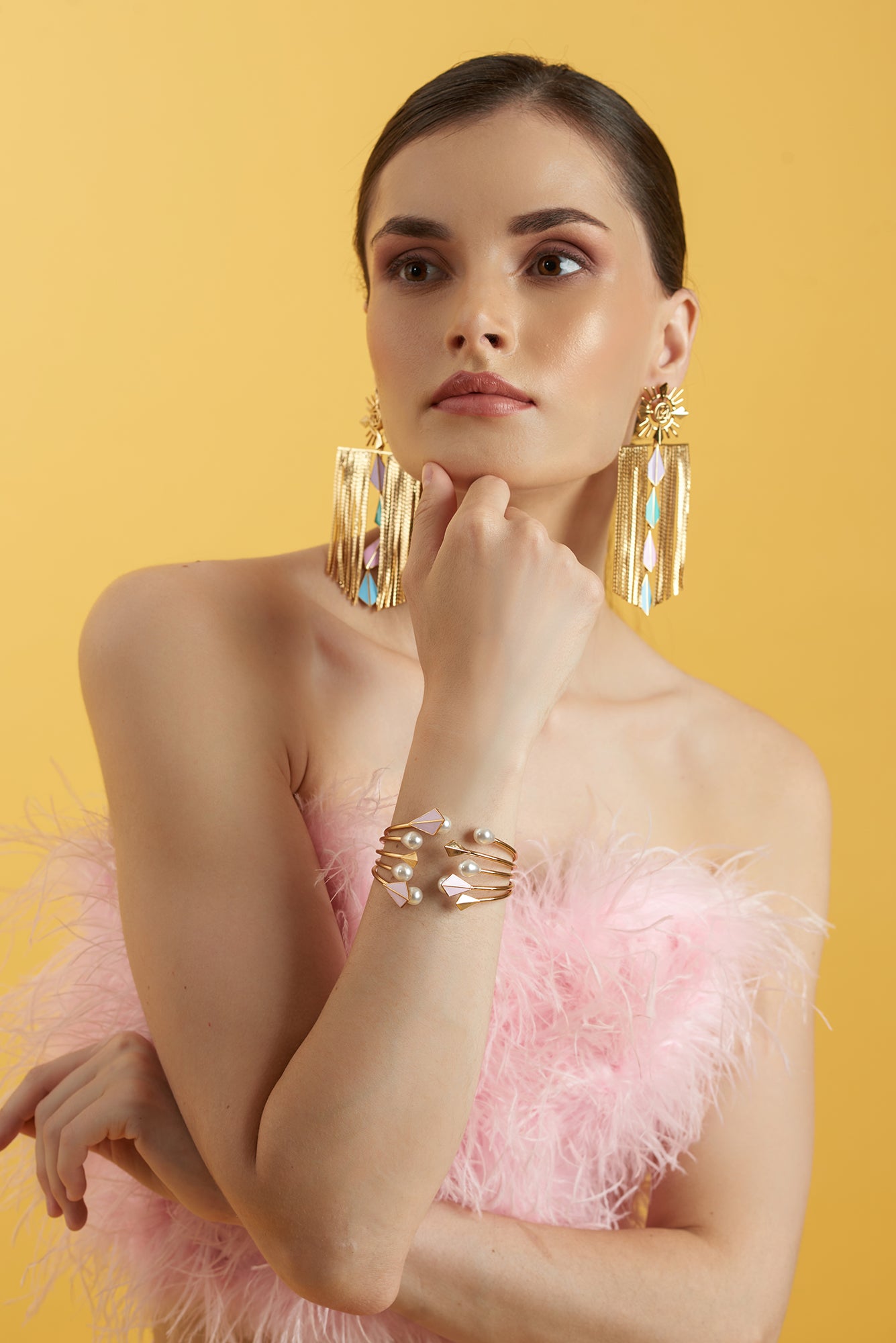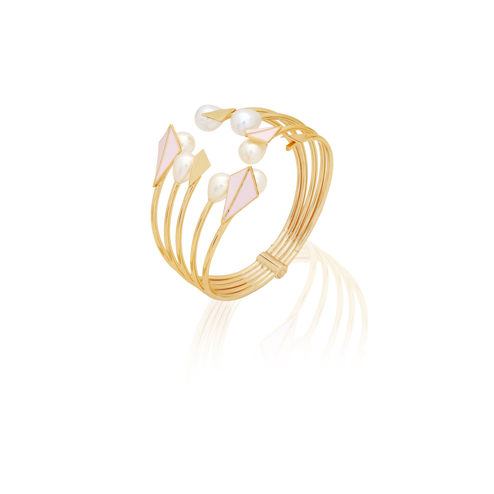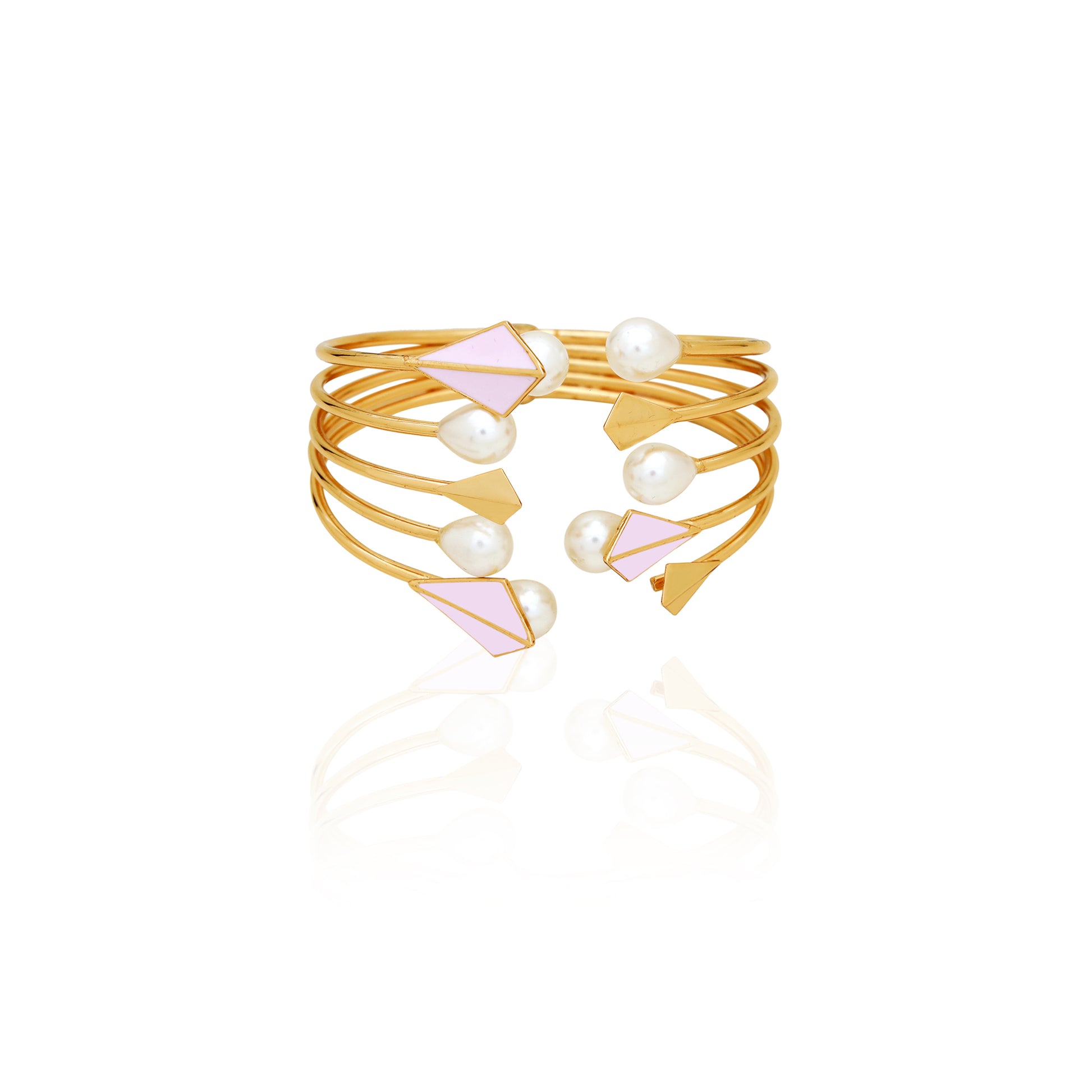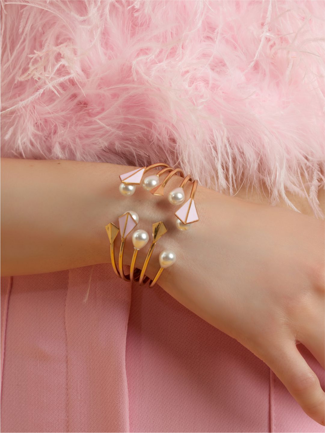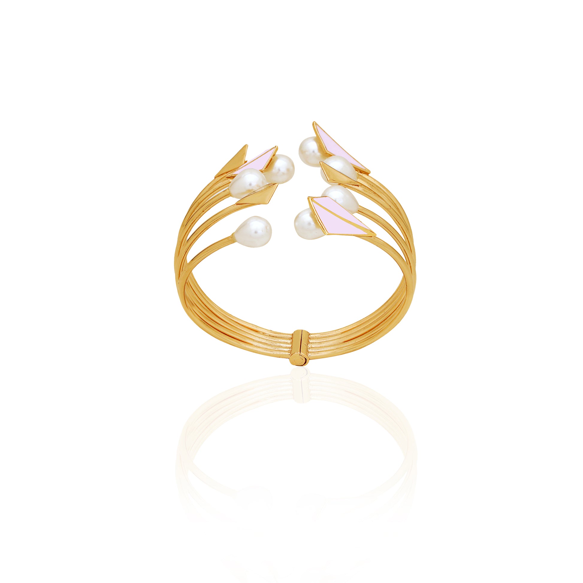 In This Passionate And Graceful Summer, Style Yourself With RUHHEITE's Chic Bracelet With Rodium Finish, 22K Gold Polish, And Enable Colour Leaves. Finishing The Piece With Tier Drop Pearls, So You Could Look Drop Dead Georges In Summer Evenings. Inspired By Summer Twilight When The Sun Goes Dawn.
