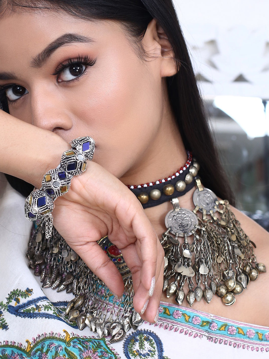 We present to you our beautifully handcrafted handcuff. It is derived from ancient Hebrew which means 'beauty'. This gorgeous piece of art is handcrafted by the supremely talented artisans. With this gorgeous piece we revisit the banjara culture, which is the epitome of grace and uniqueness.