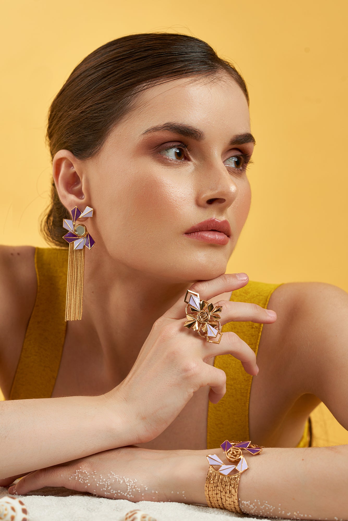 Our Signature Moon Charm Ring Has A 22K Gold Tint And Rodium Coat. RUHHEITE's Quintessential Design With Gleaming Sun Radiant Shine. Enhanced In Colour Enables Petals To Finish The Look In Perfection. Best For Any Attire And Goes With Almost Everything. Luna Swing Can Make You Feel Like A Goddess In Moments Of Style.