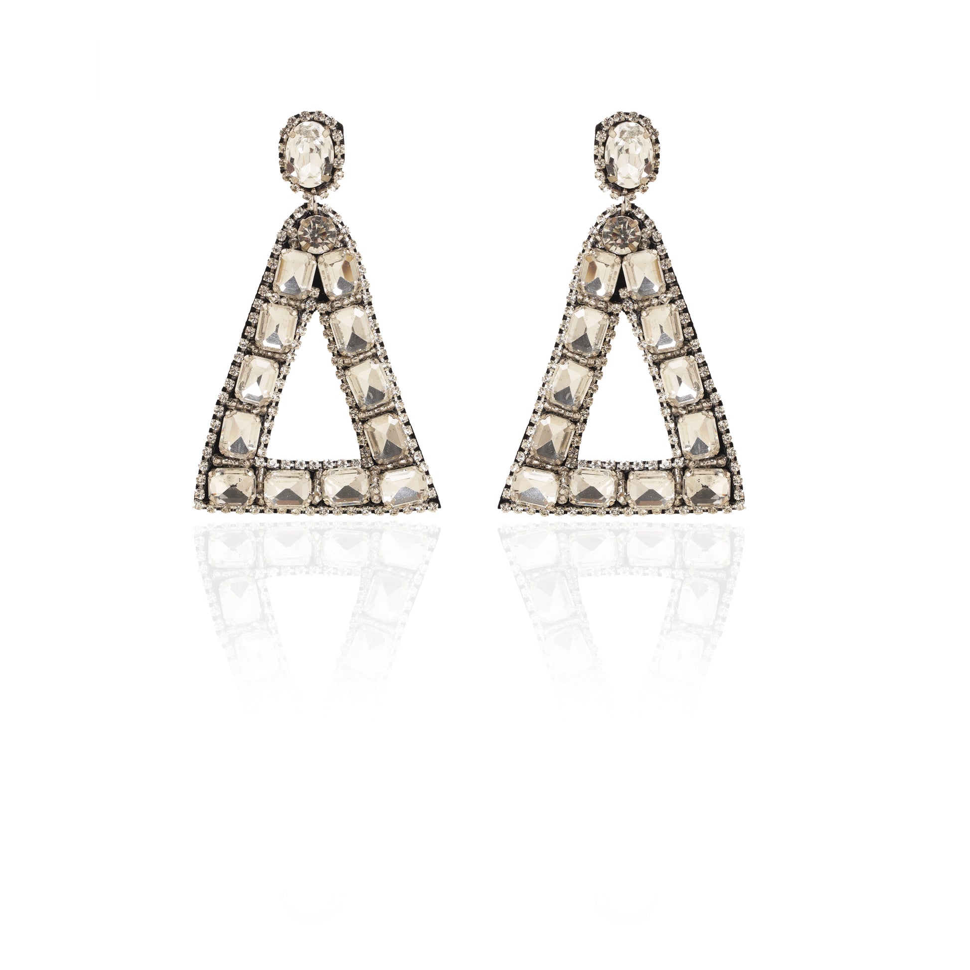 These distinctive triangular crystal earrings find the most beautiful balance between elegance and style. This piece features beautifully cut white crystals.