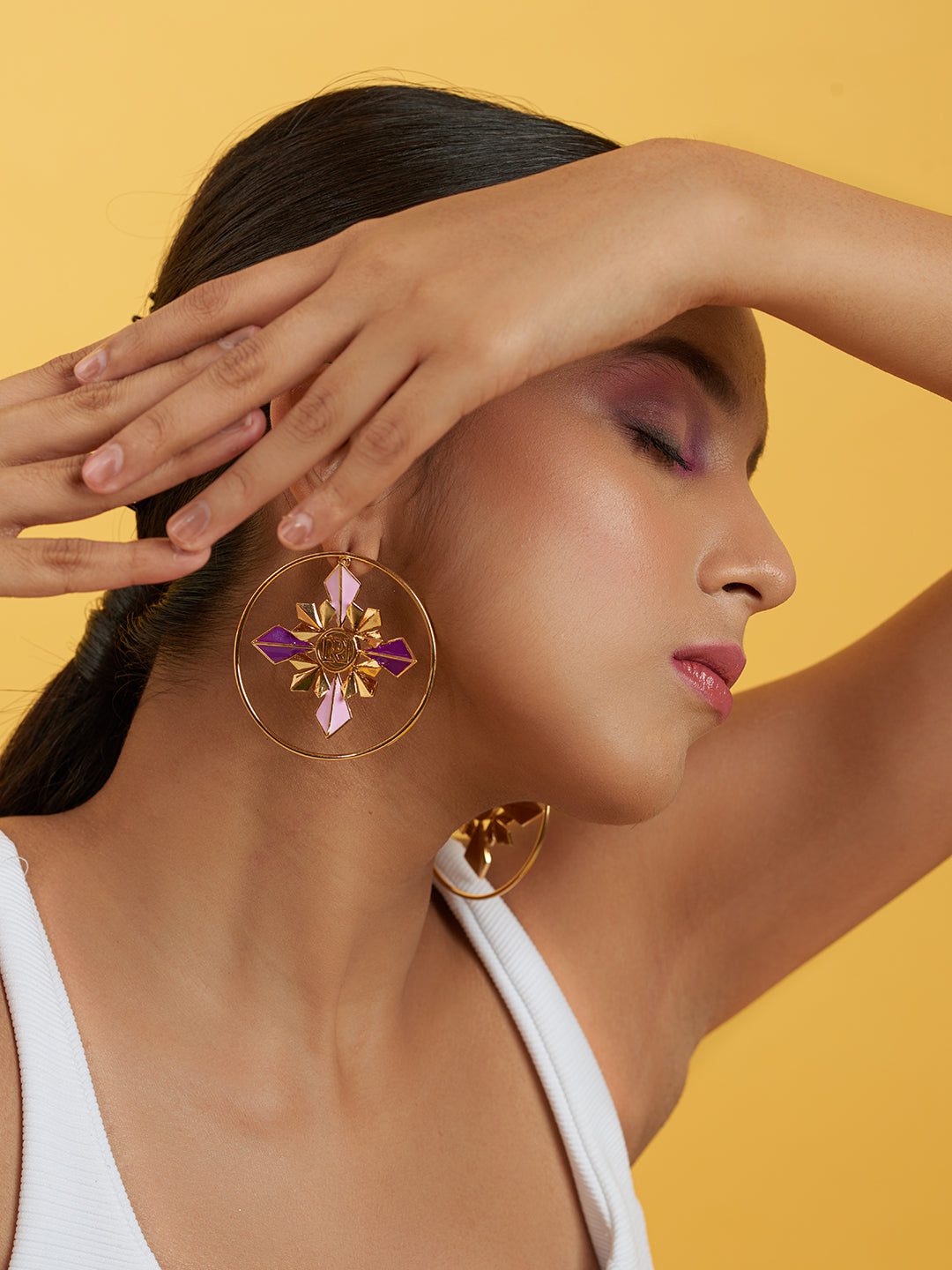 Signature Look Of The 60S With Mordern RUHHEITE's Touch. Enameled Plats In Angular Star Appearance. 22K Gold Polish, Crafted In A Manner To Reflect Sun Rays Right On You. RUHHEITE's Eleonora Hoops Are Best For Cocktail Hour. It’s Our One Of The Best Pairs Of Earrings Only For You.