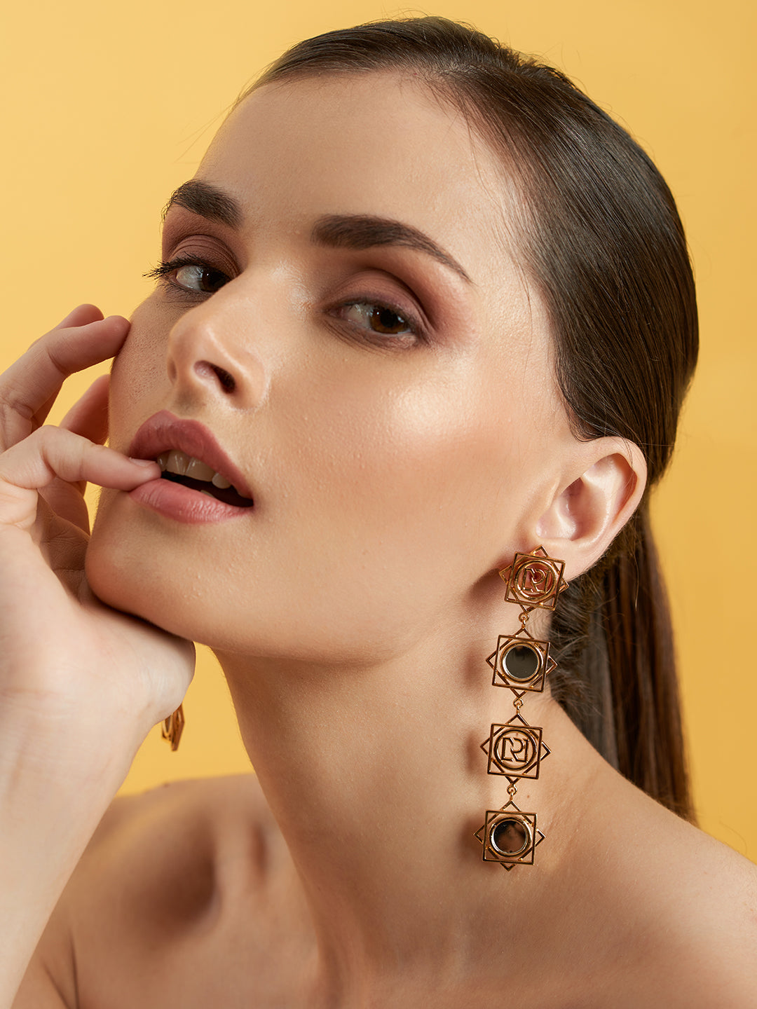 Finished with the radiance of 22k gold plating, the Floret earrings instantly add a charismatic touch to your ensemble. Designed for catering to the discerning few, this minimal chic bracelet reflects sunlight to make you sparkle. Add this pair of earrings from your RUHHEITE to your vanity for an exquisite accessory that is versatile too.