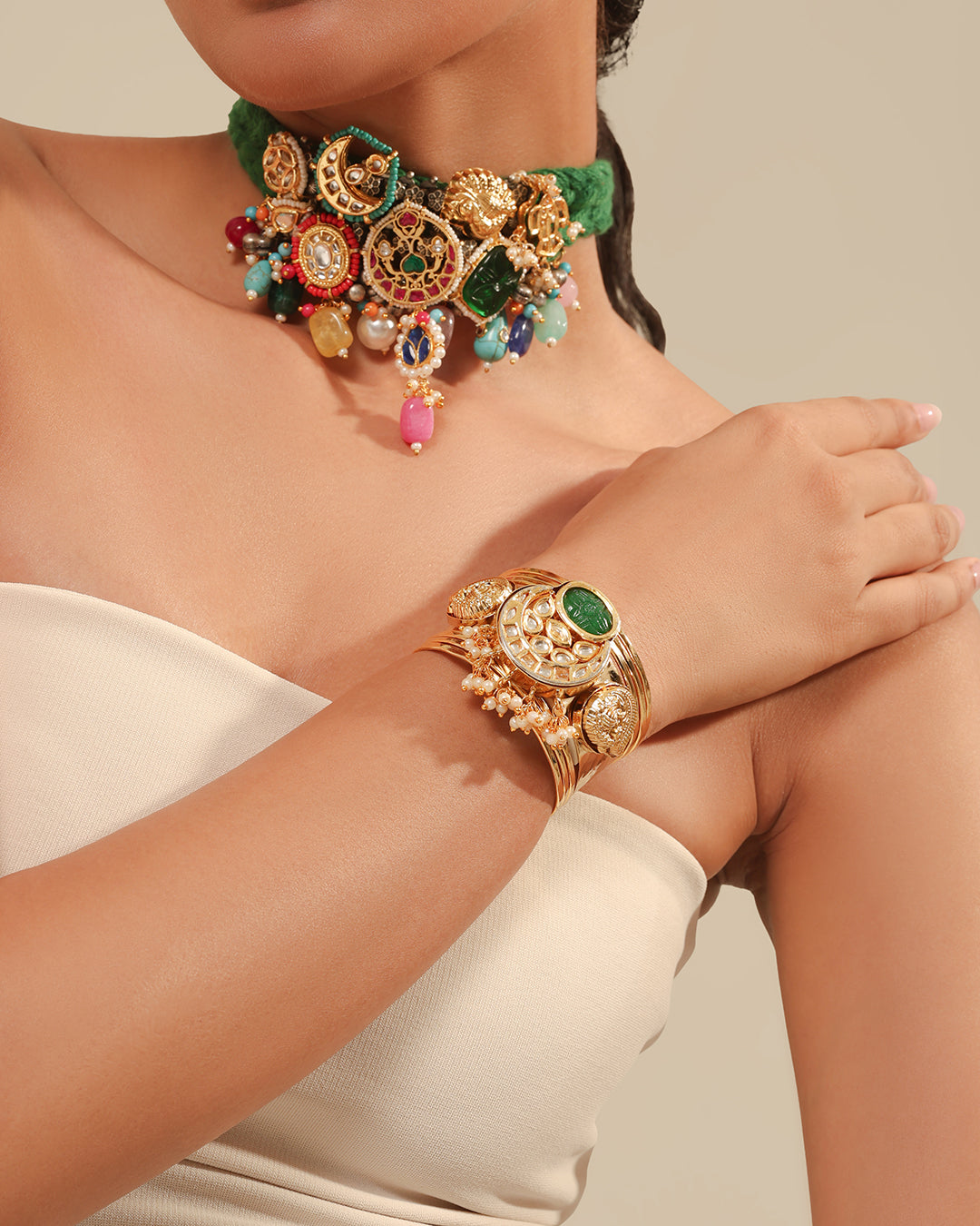 Unique Design: Each piece is handcrafted using Pachi Kundan motifs and Polki Motifs.