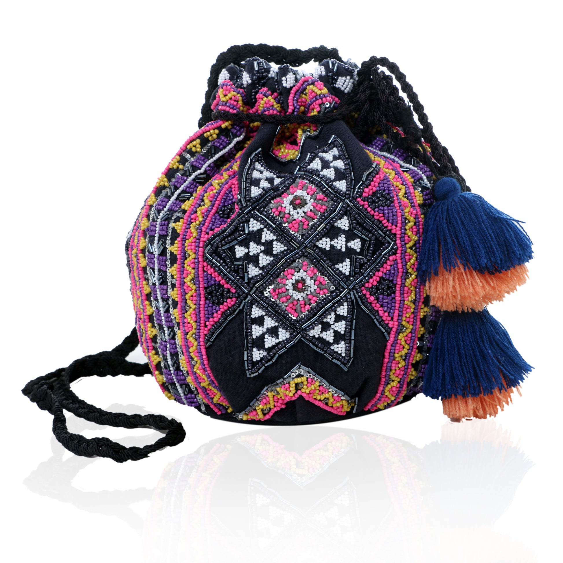 Tastefully Curated and hand embellished this is definitely the most sort after bohemian bag. The intricate bead work and tassel detailing makes it as fun as it is trendy.