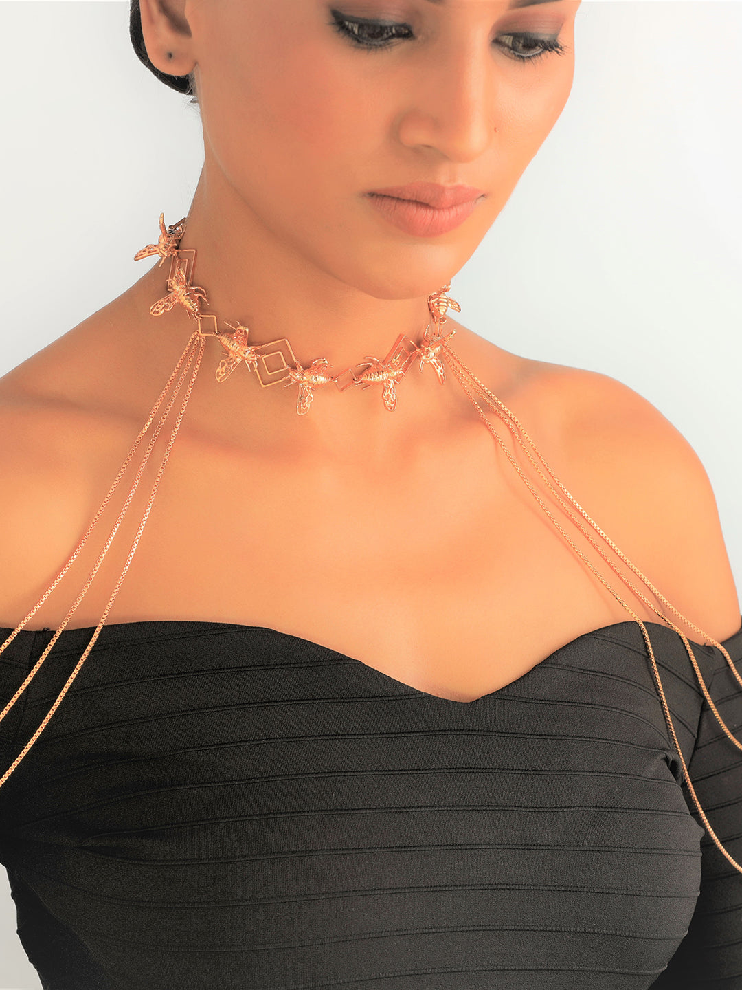 Linked to an intricately crafted choker, the Harmony body chain stands apart from the crowd.