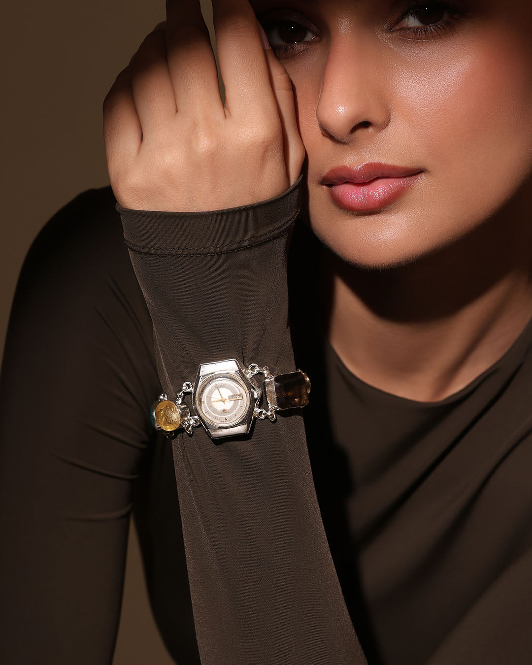 The Eleventh Hour Bracelets are not just an accessory they are a keepsake of time. Made with authentic antique watch parts, each bracelet carries the silent stories of moments that once ticked by. Wear it as a reminder to live fully in the now while honoring the beauty of the past