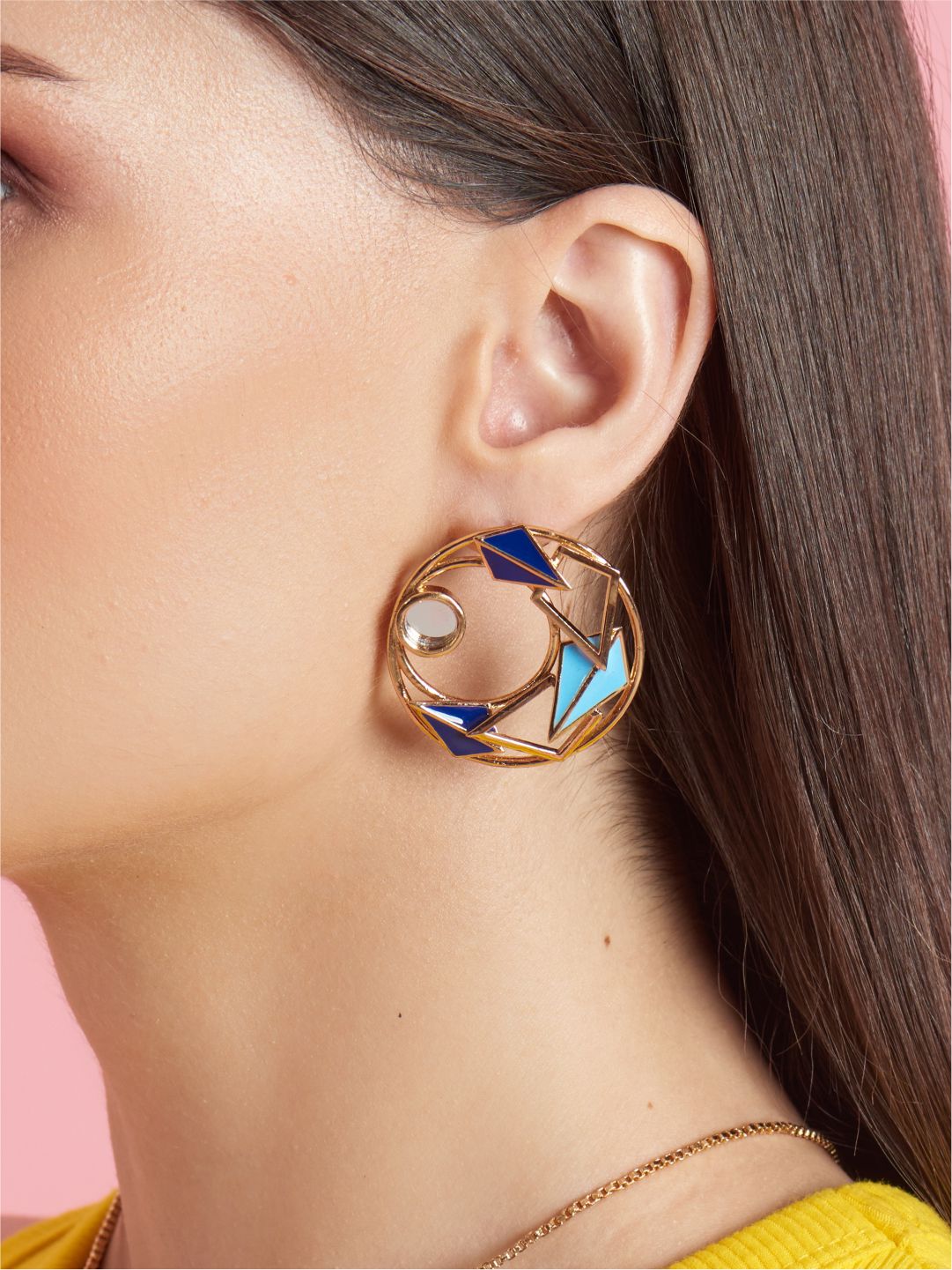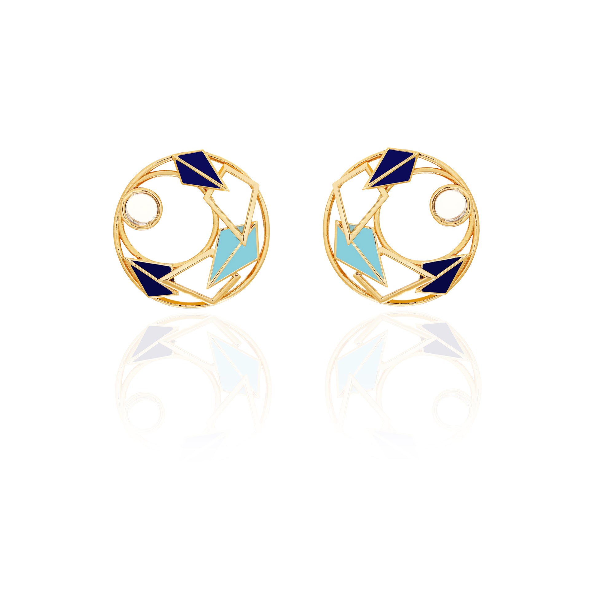 Klara Bliss Is Bright Yet Subtle. RUHHEITE's Mini Cosmos Are Made With Passion And Love. They Are 22K Gold Coated, Hoop-shaped Studs With Enabled Plats, Glazed With Brave Blue. The Mirror Is Attached In The Middle. They Are The Right Fit For Every Approach.