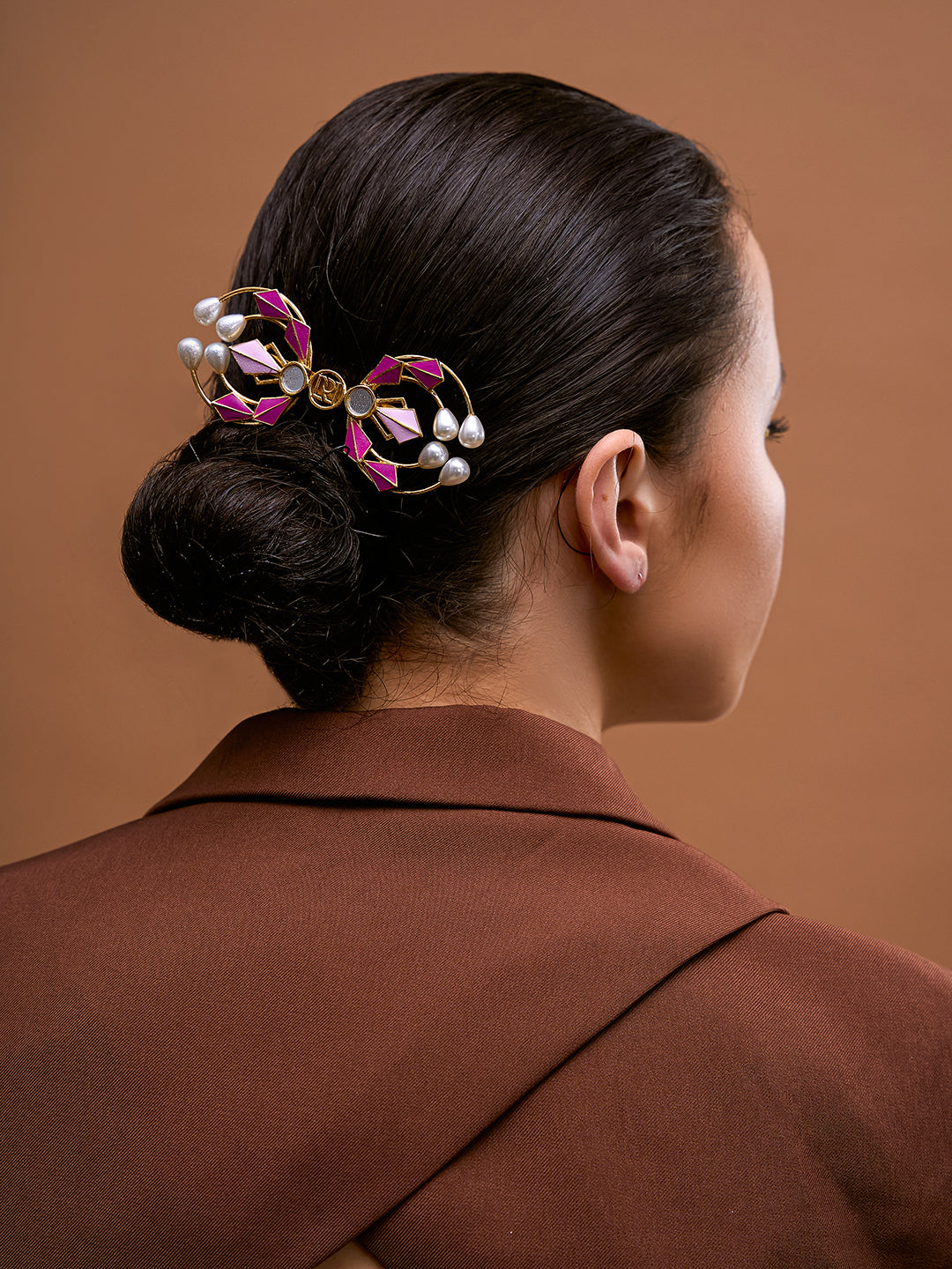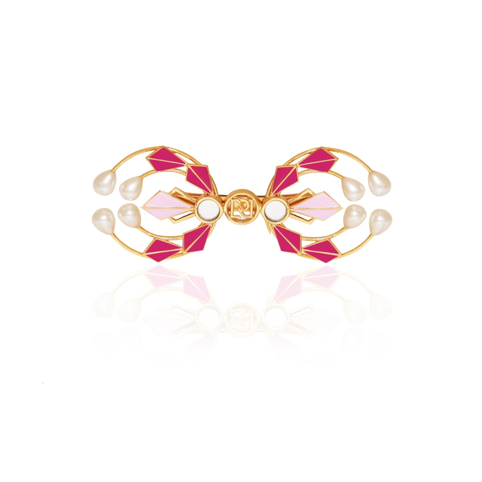 Enamelled with two tones of pink and adorned with pearls, the Poppy hair clip