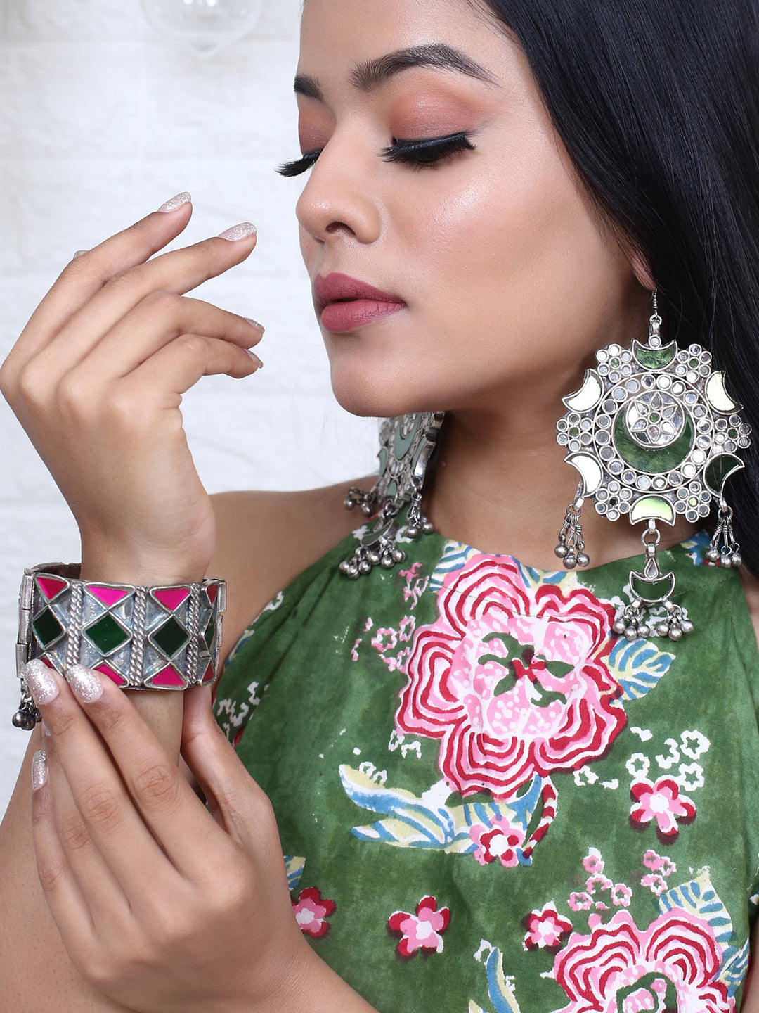 We present to you our beautifully handcrafted handcuff. It is derived from ancient Hebrew which means 'beauty'. This gorgeous piece of art is handcrafted by the supremely talented artisans. With this gorgeous piece we revisit the banjara culture, which is the epitome of grace and uniqueness.