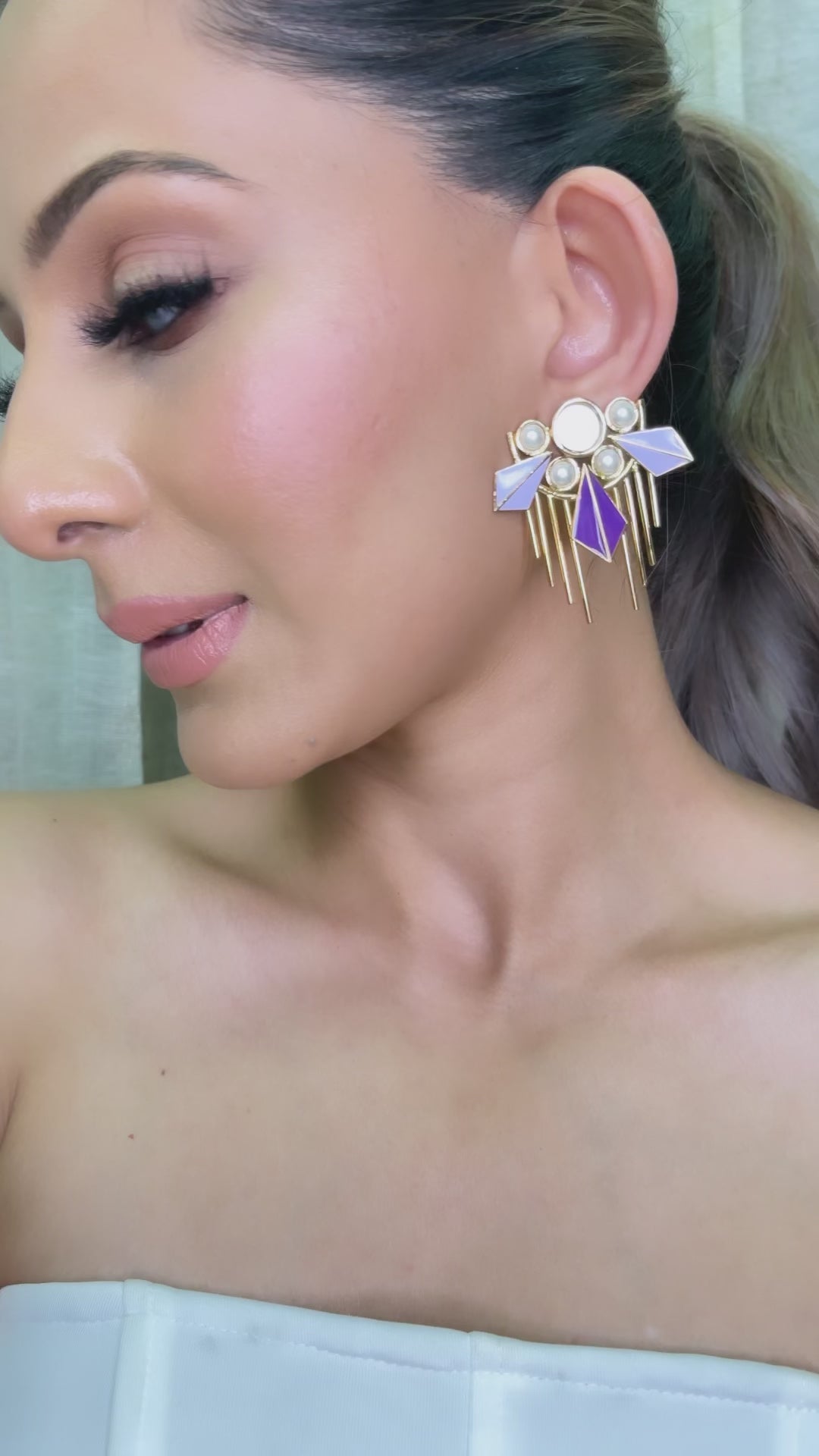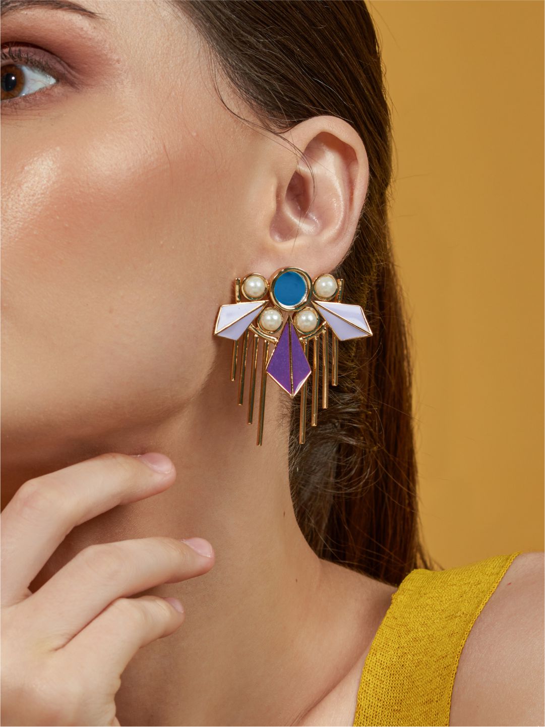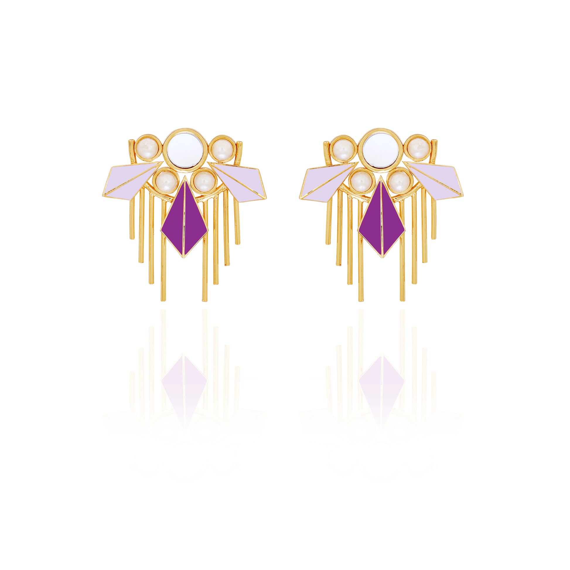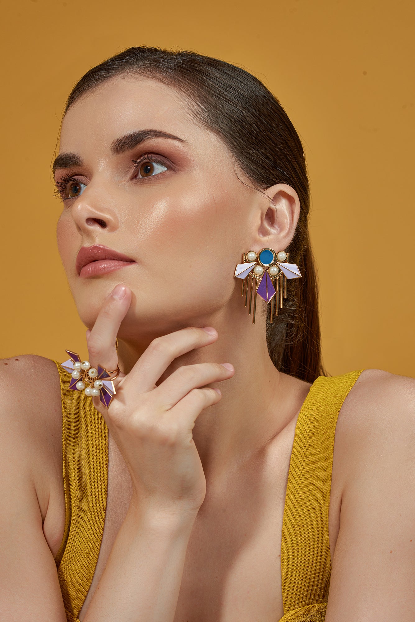 10,000 Stars Are Visible To The Naked Eye, But Only A Few Hundred Have Been Named, Here One Of RUHHEITE's Flawless Star-stellar Dazzlers. Radiant Star Earrings with Rays Mowing Down, Enabled Colour Petals With 4 Dynamic Half Moon Pearls And Mirror. 22K Gold Polish, Classic Peace To Finish Your Evening Look.