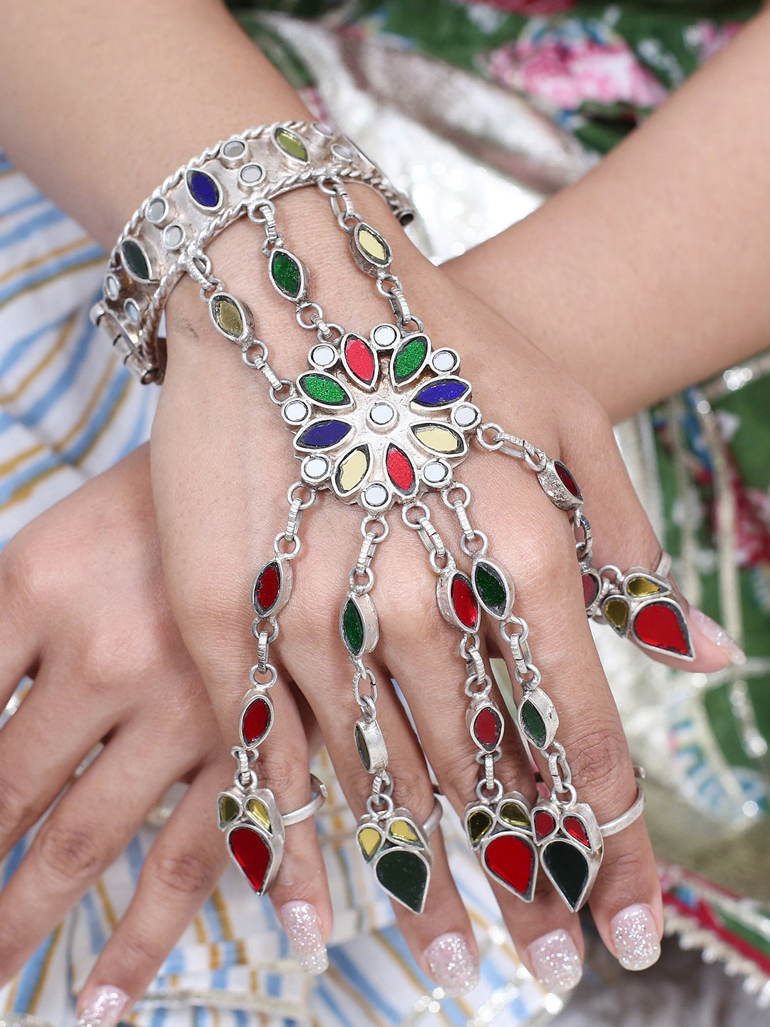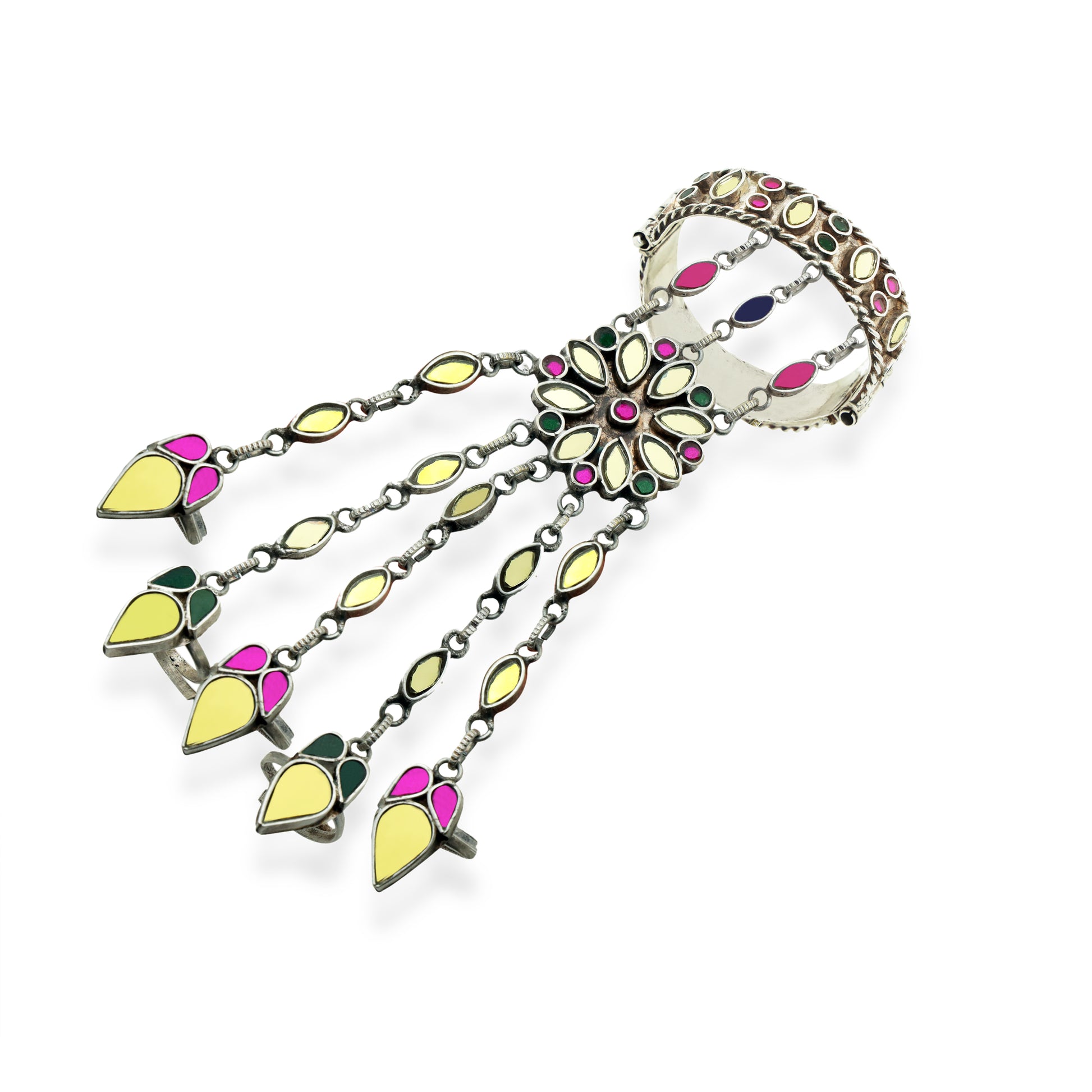 We present to you our beautifully handcrafted handcuff. It is derived from ancient Hebrew which means 'beauty'. This gorgeous piece of art is handcrafted by the supremely talented artisans. With this gorgeous piece we revisit the banjara culture, which is the epitome of grace and uniqueness .