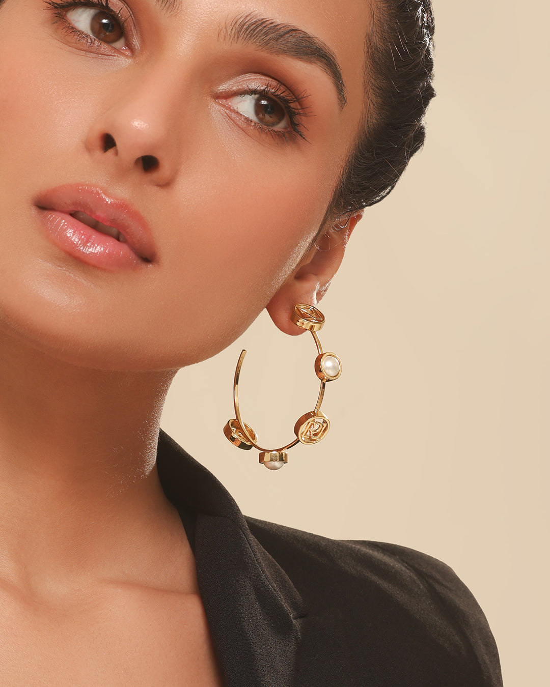 Sleek Pair Of hoops That Calms You But Also Brightens Your Inspiration. These Elegant Earrings Are Strong 22K Plated, Handcrafted With Love For Every Strong Woman Out There. These Earrings Speak Boldly for Modern Day Fashion.