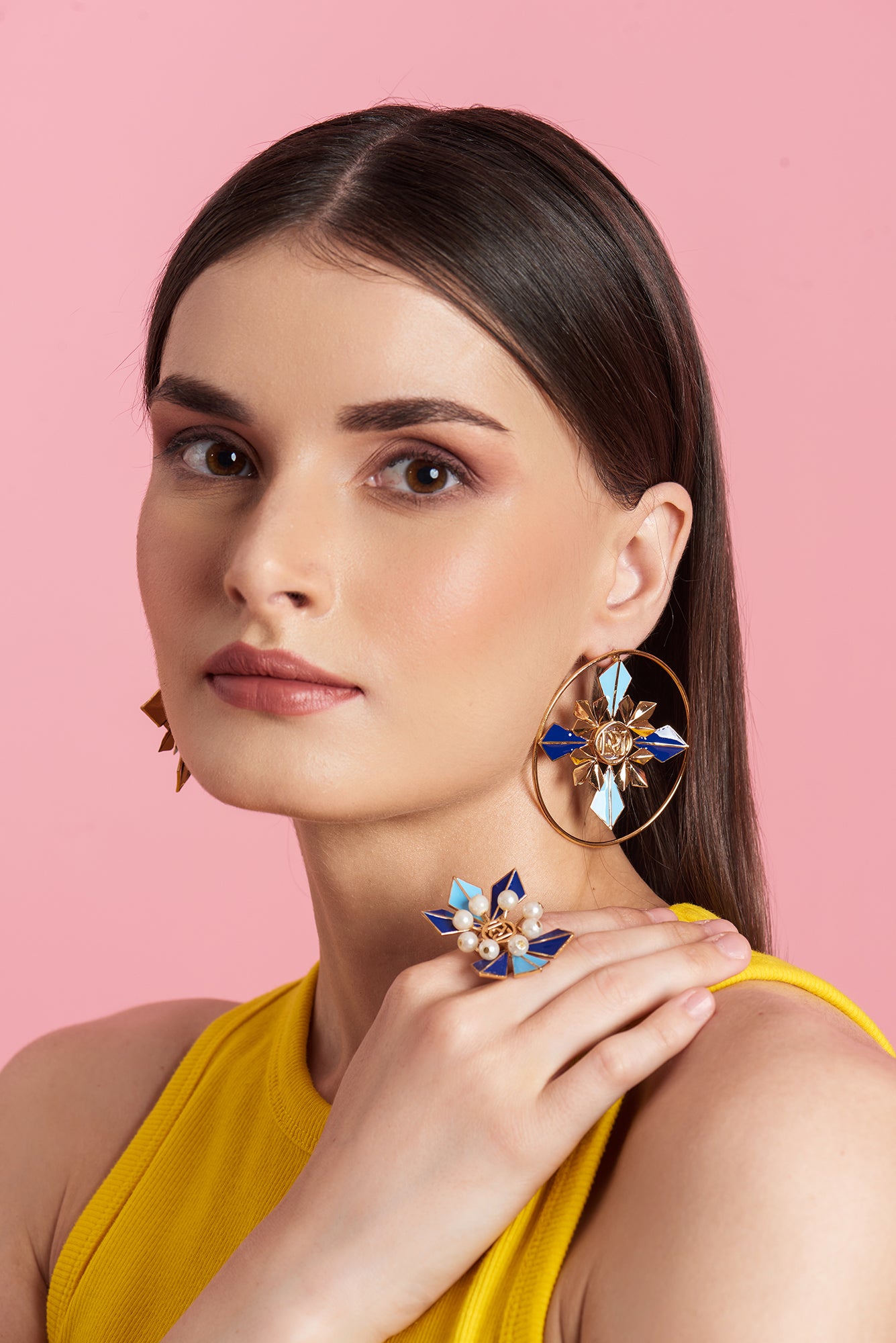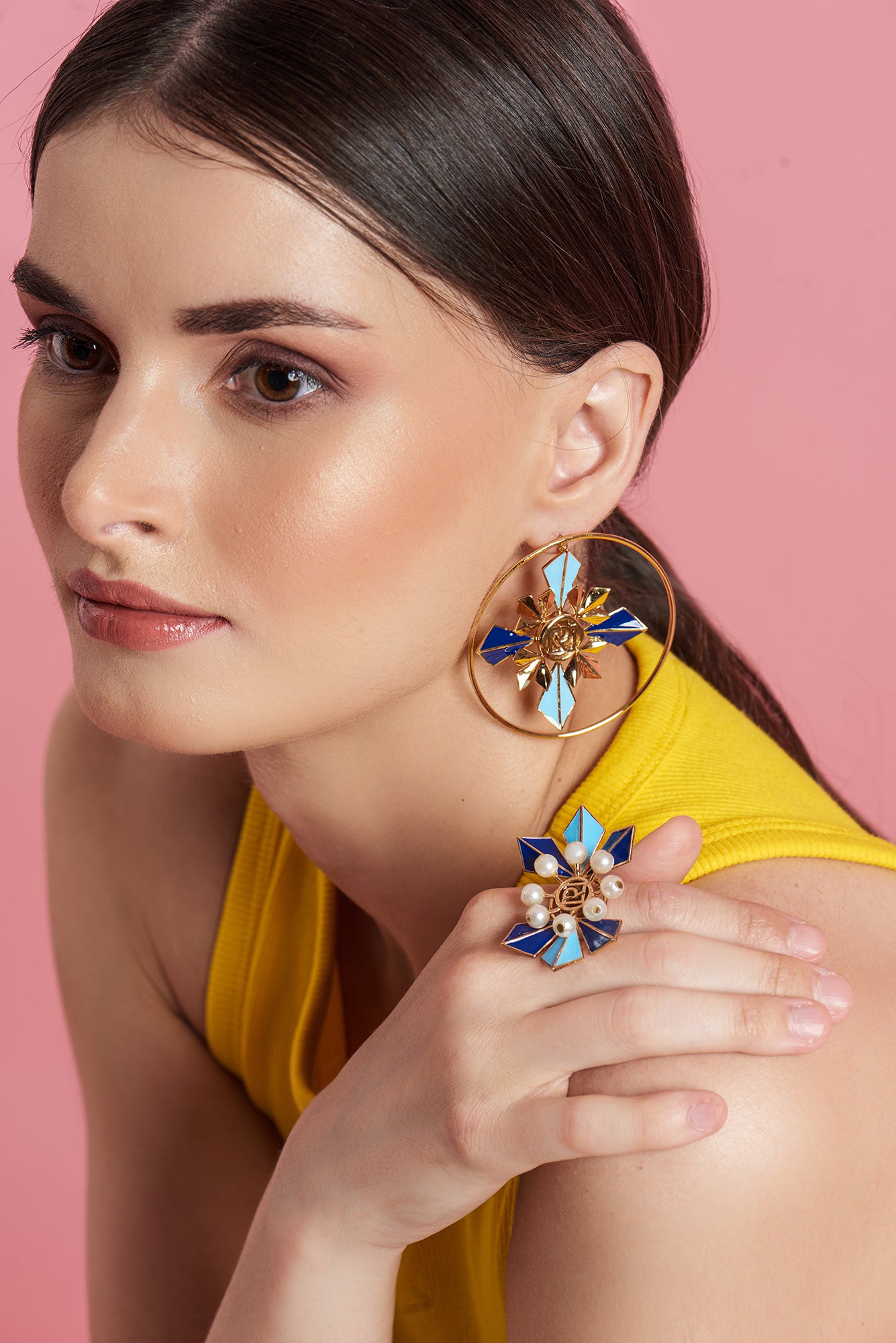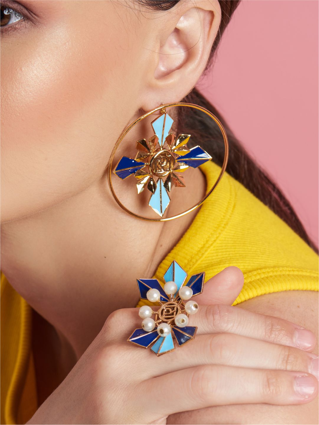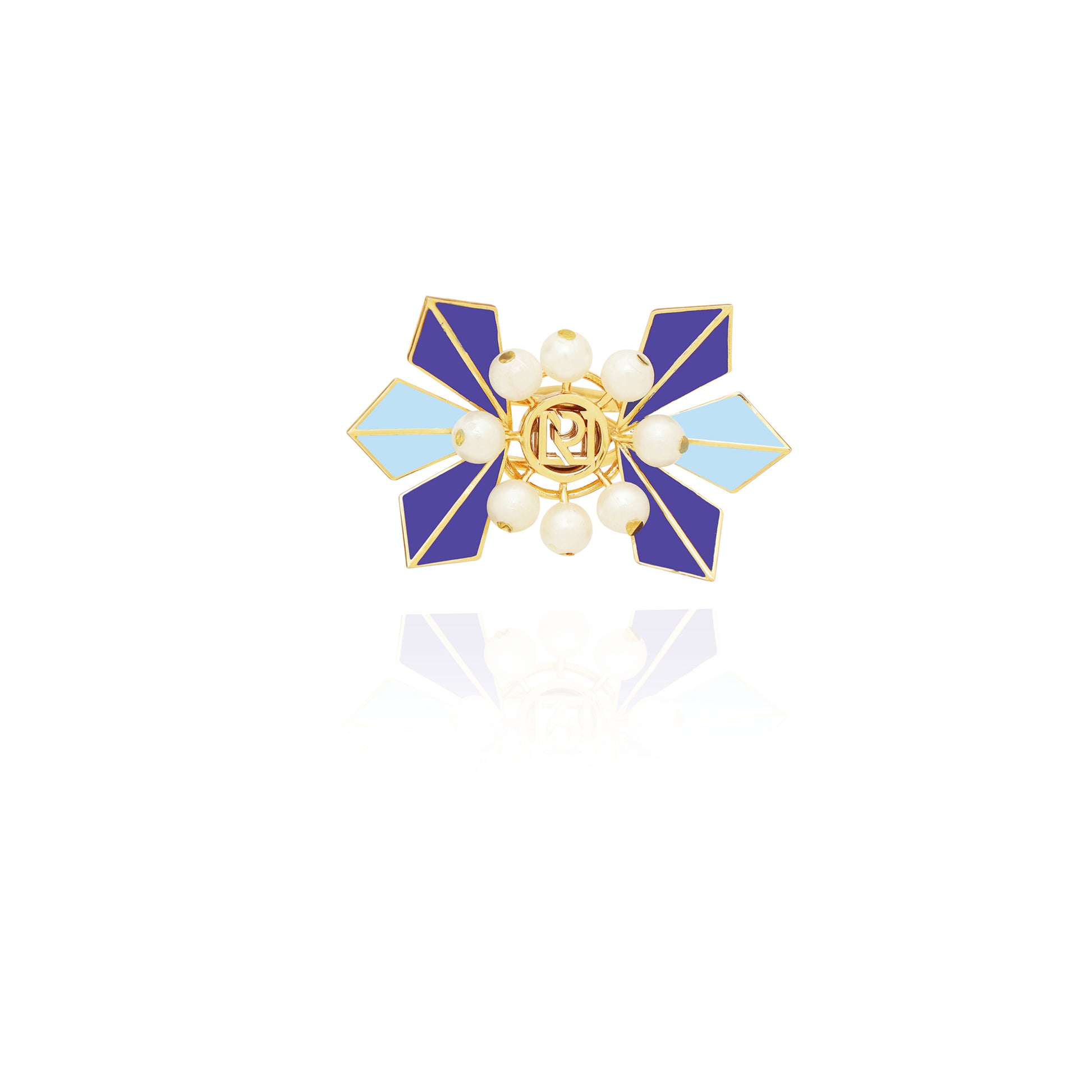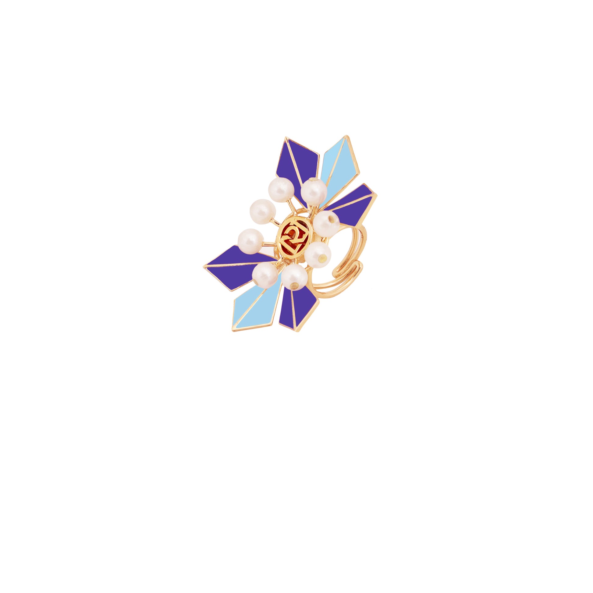 Handcrafted In Our Signature Charm Ring Dusted In Moon Shine, With A Gleaming 22K Gold Finish, Rodium Polish, And Enable Coat. Ruhheite’s This Morden Jewel Goes With Various Styles. Embellished With Glowing Moon Pearls And Iconic Design. Every Element Of This Ring Is To Adore Your Heart.
