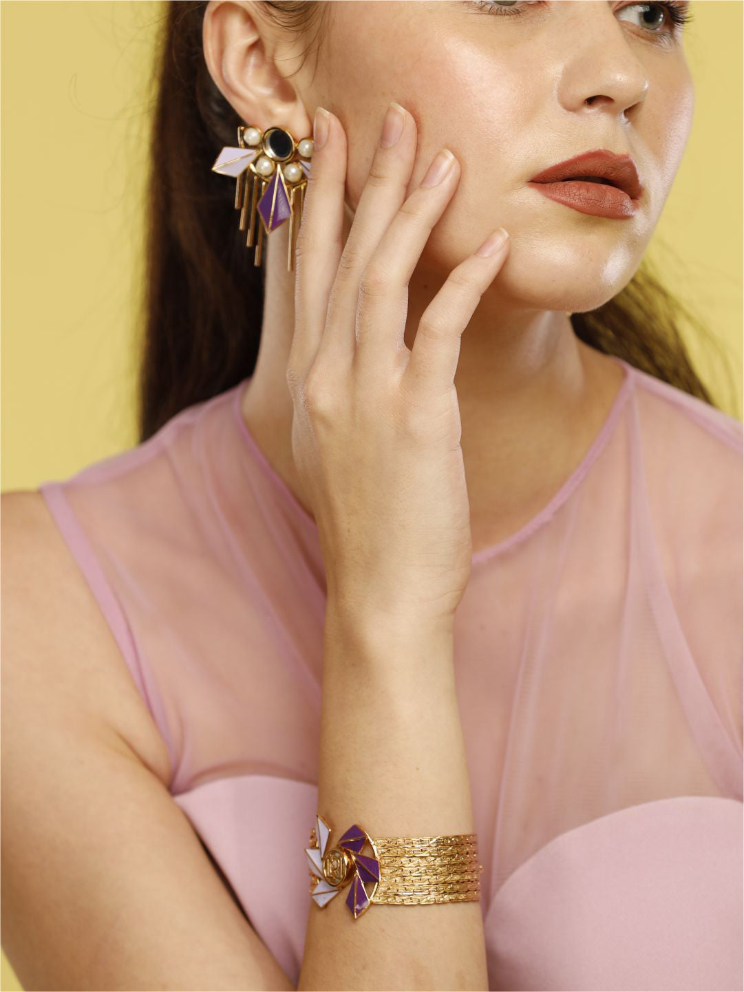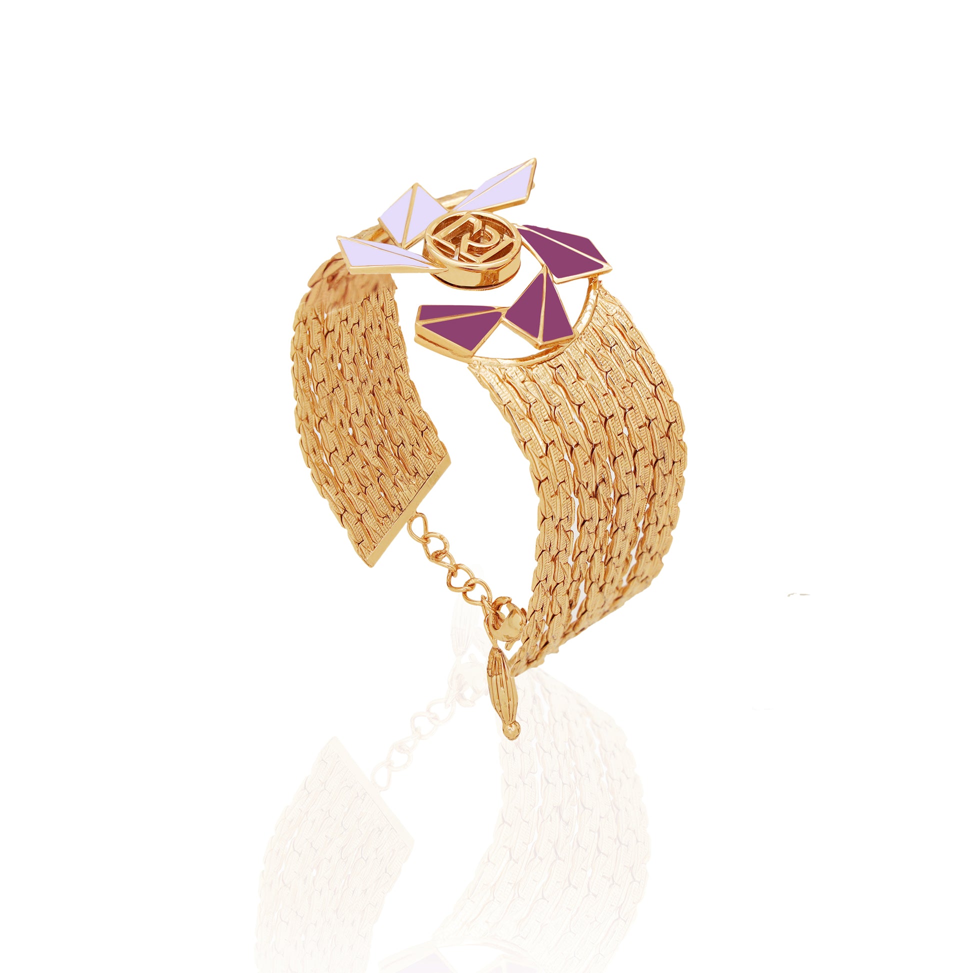 Brilliantly Handcrafted To Gleaming Perfection Ruhheite’s Zora Sterling Bracelet Is Embellished With Coloured Enable Petals And A 22K Gold Finish. Chained Belts With Our Signature In The Middle. It’s The Go-to For Contemporary Looks It’s A Rising Sun From The Dawn. New Beginning, New Look.