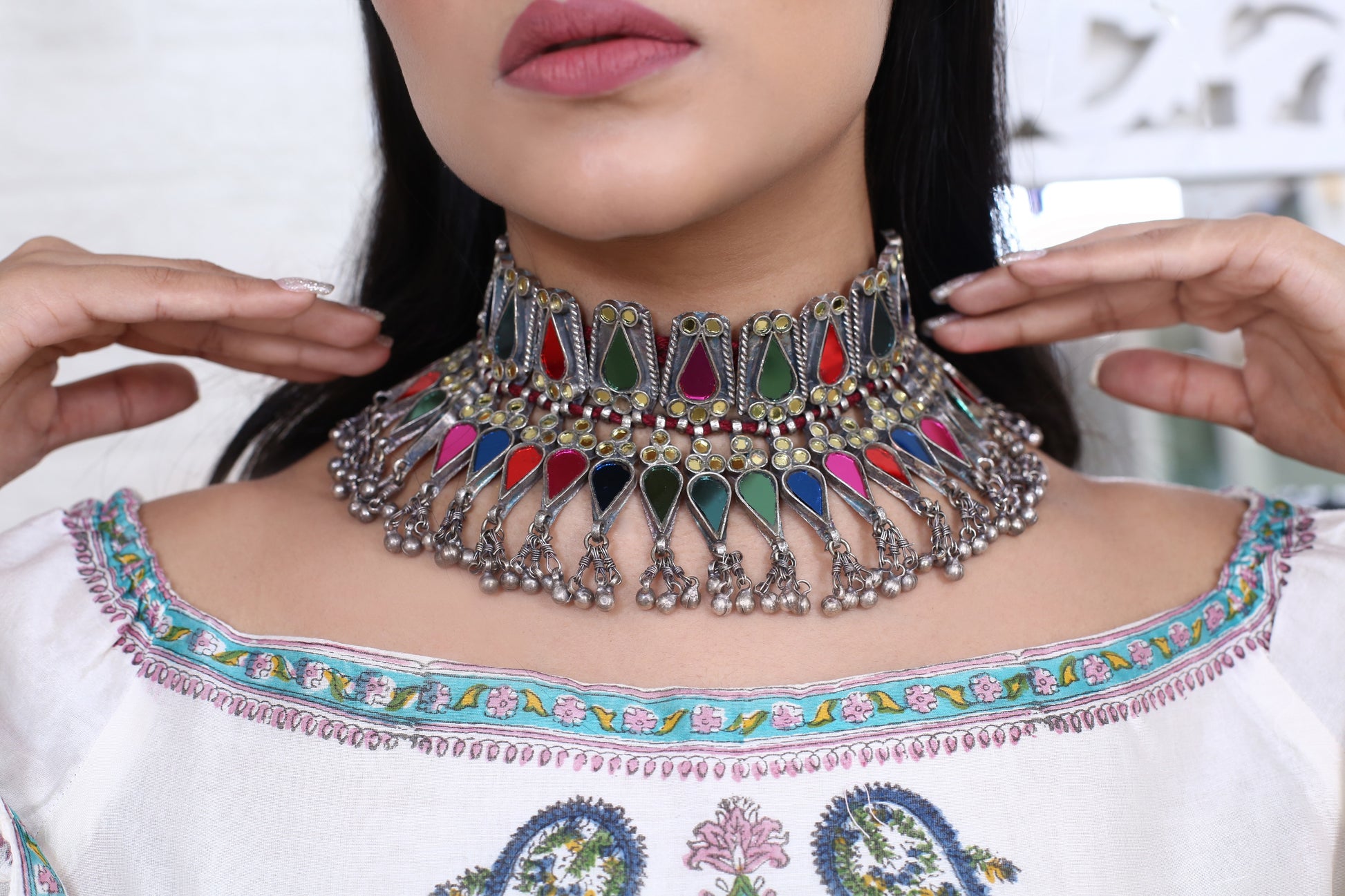 Revisit the Indian Banjara culture and vibes with chunky glass embedded statement pieces! You can flaunt them at any occasion and make heads turn.